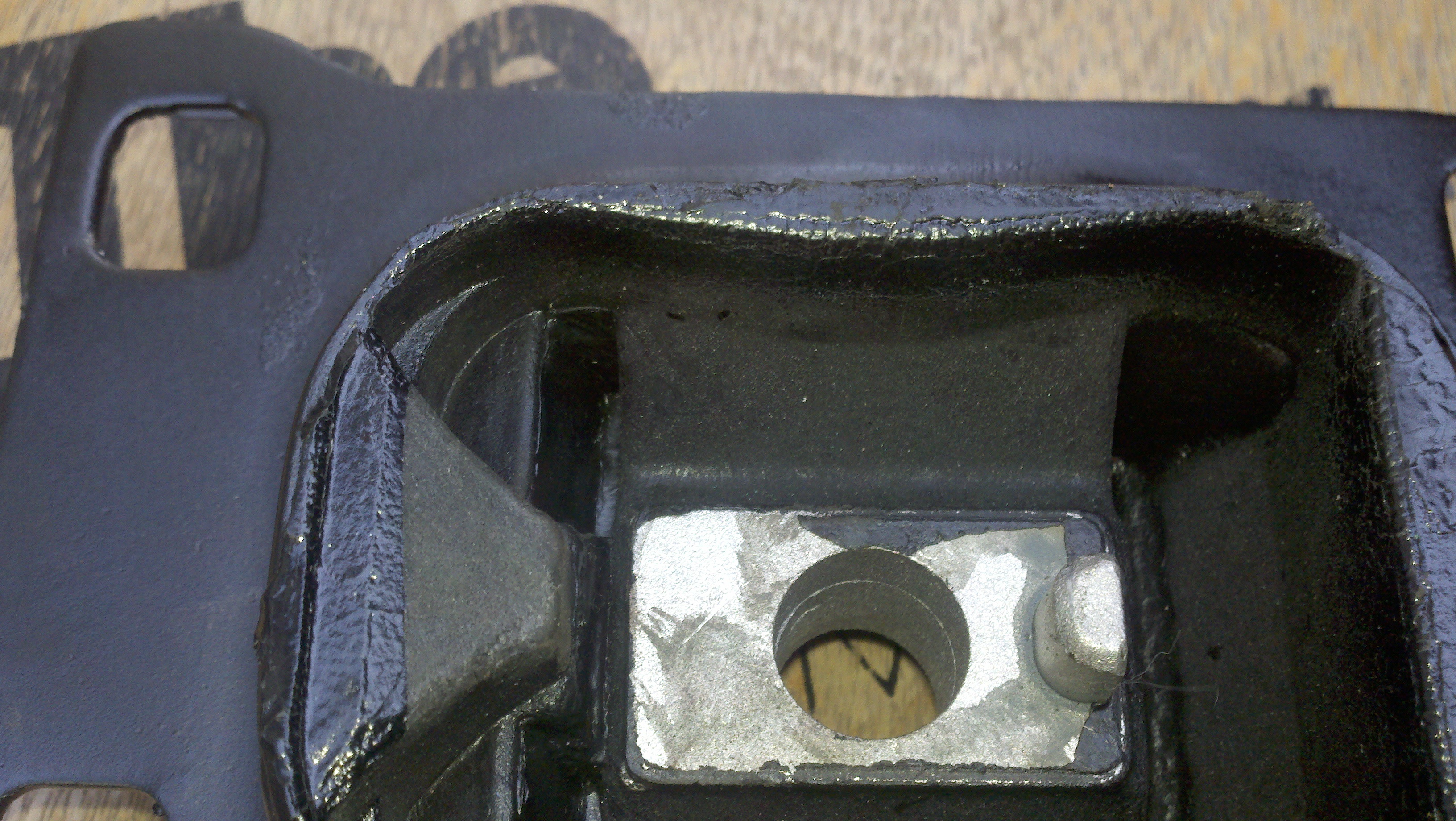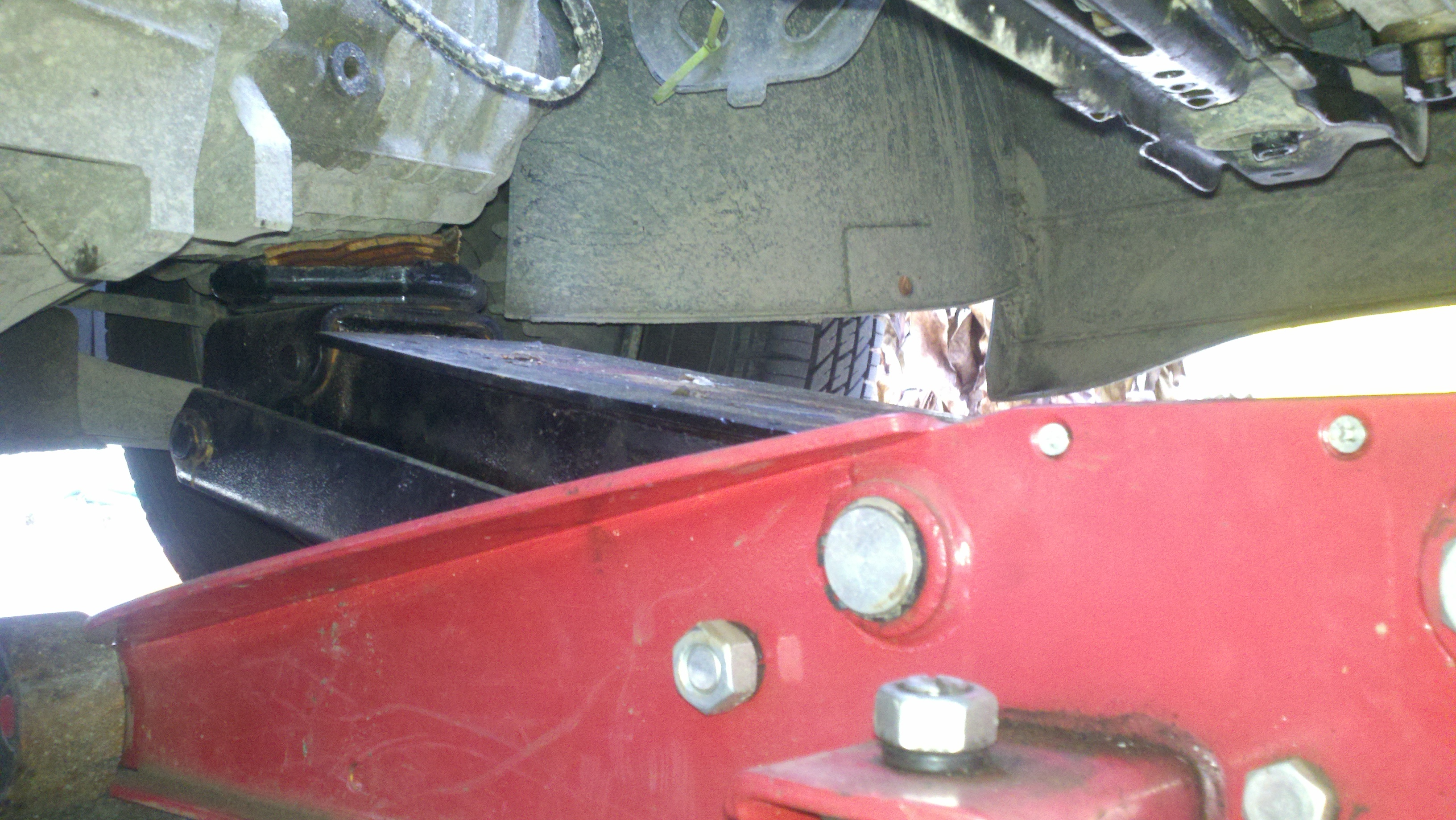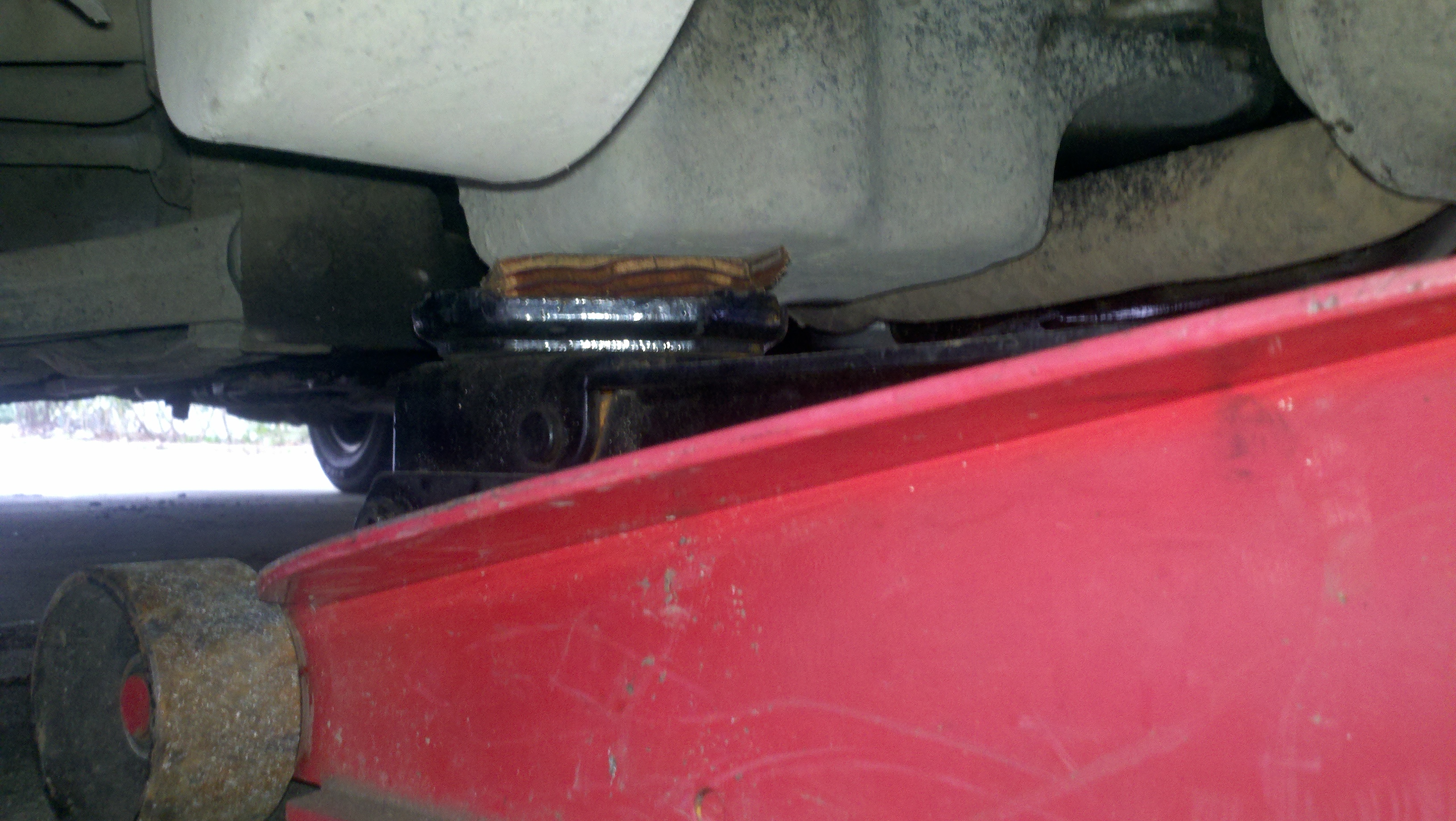 This is the old mount with the full weight of the transmission on it. Notice the distance from the