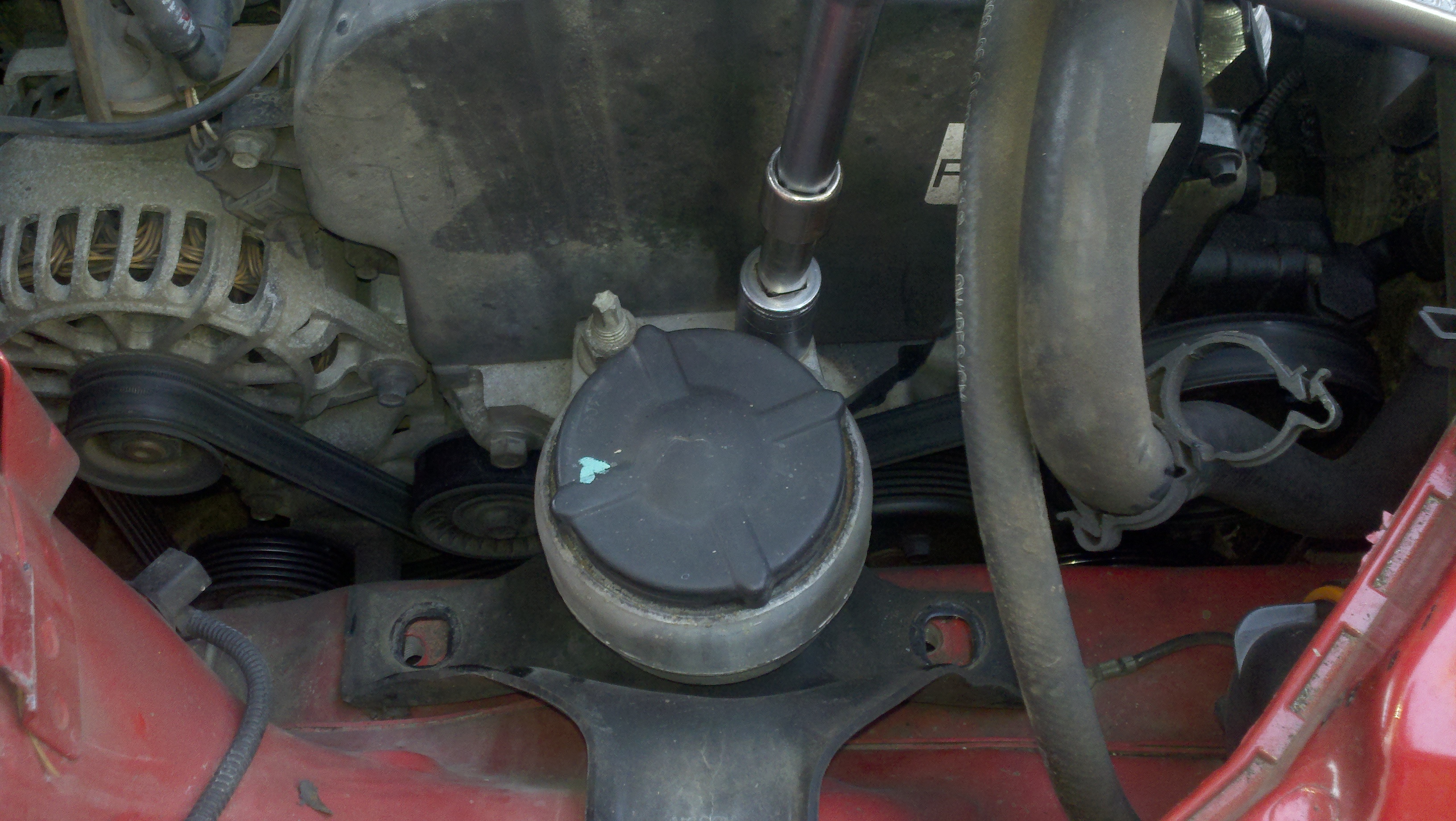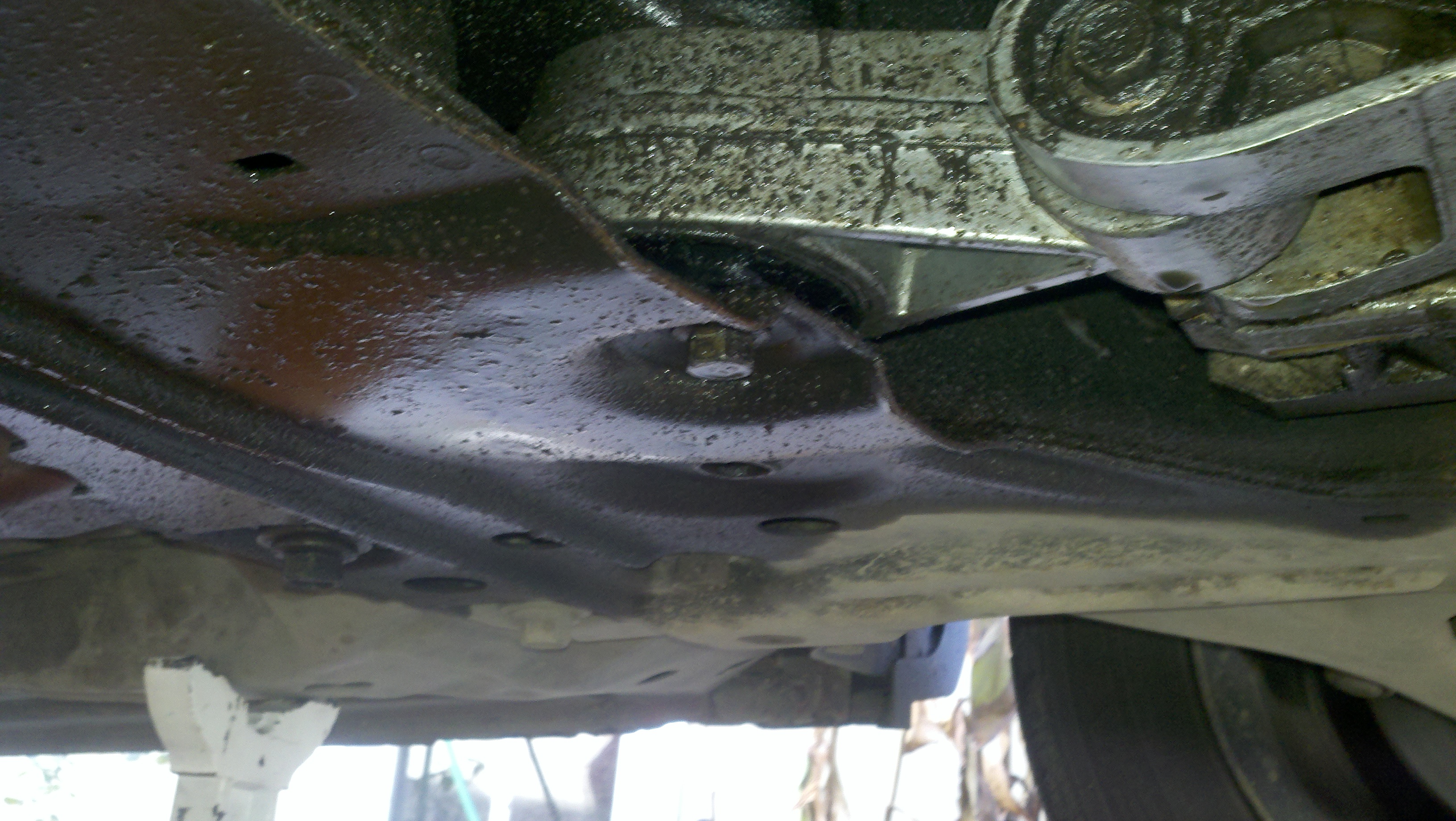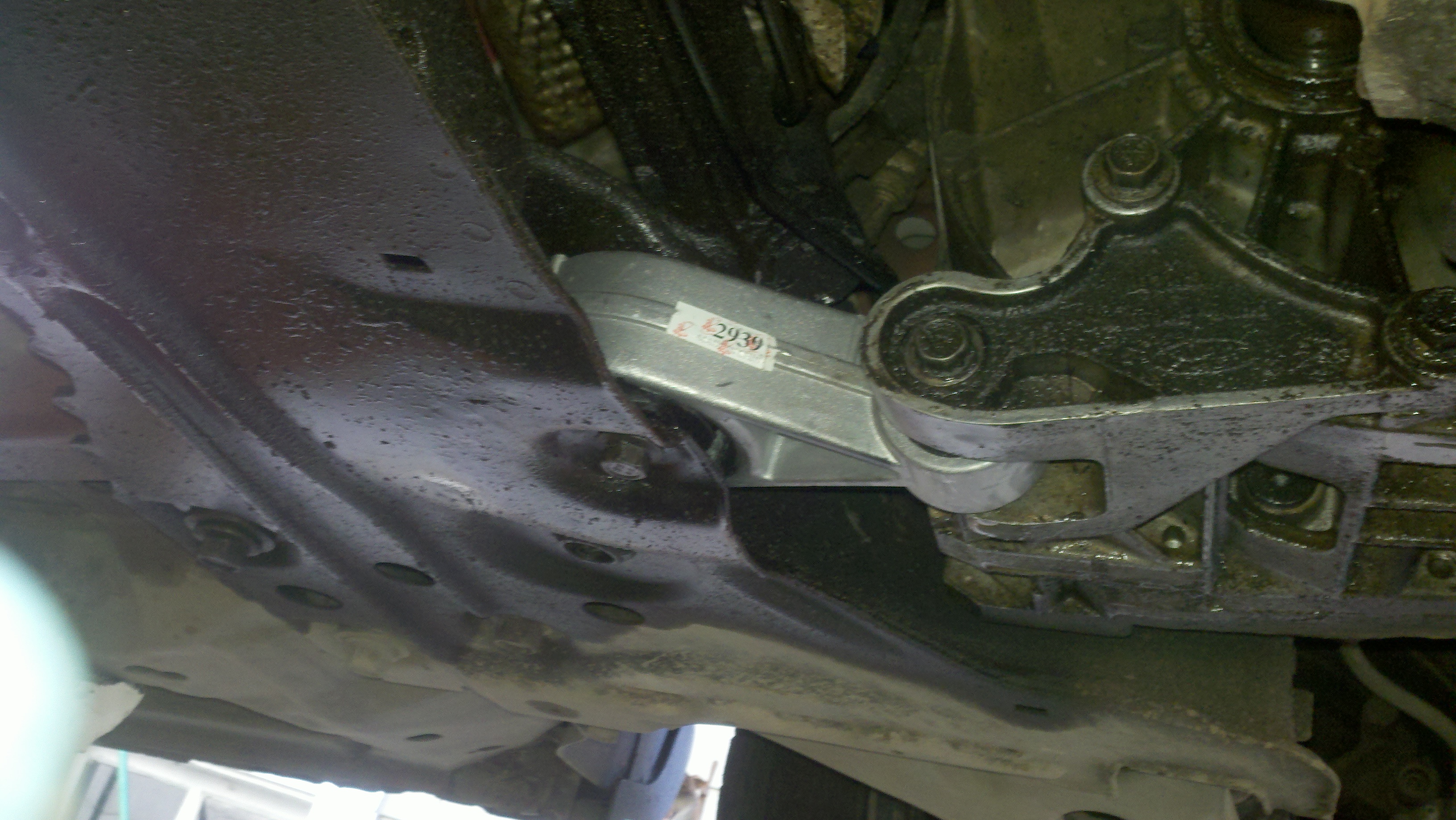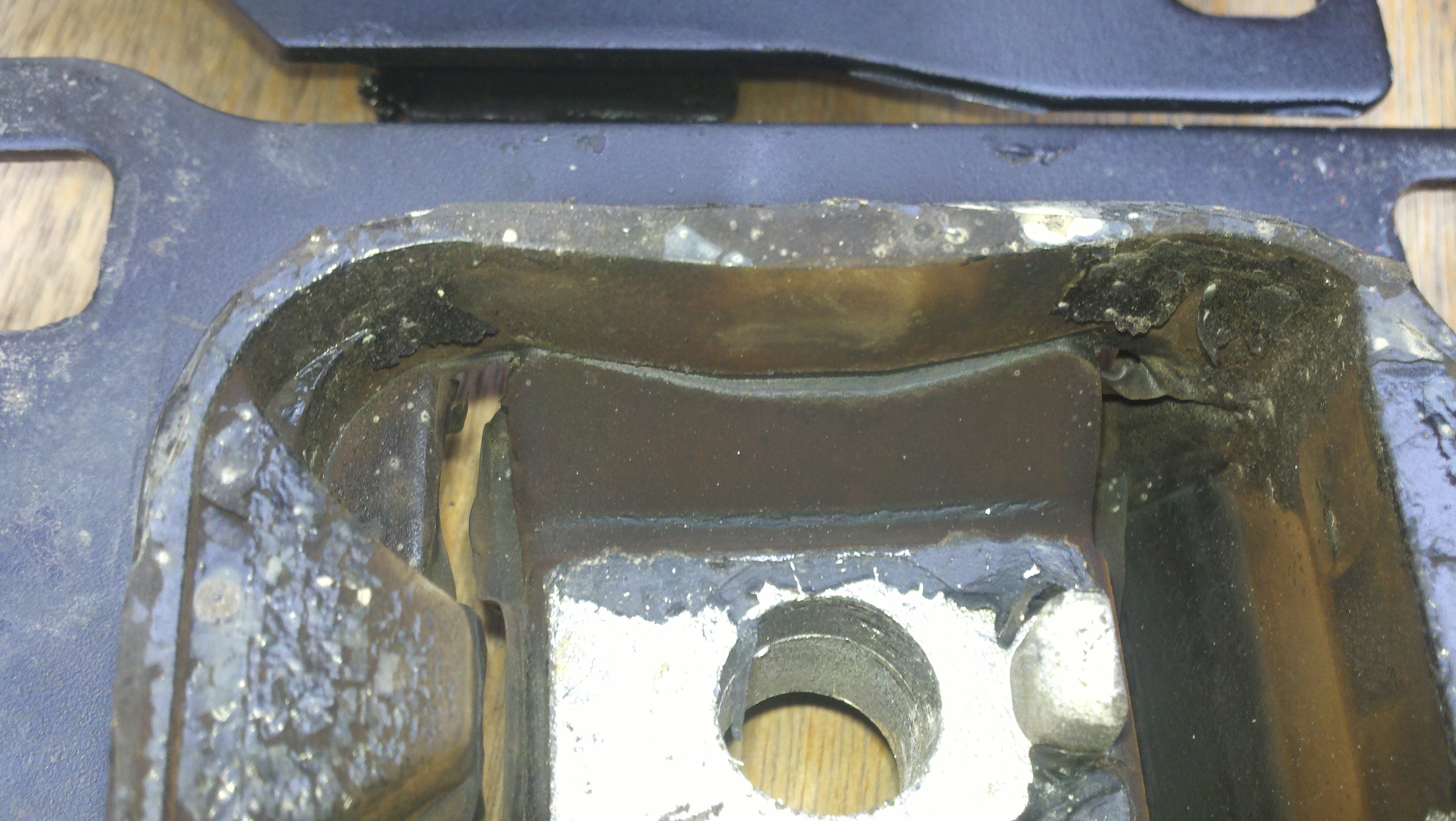 This is the old mount with the full weight of the transmission on it. Notice the distance from the