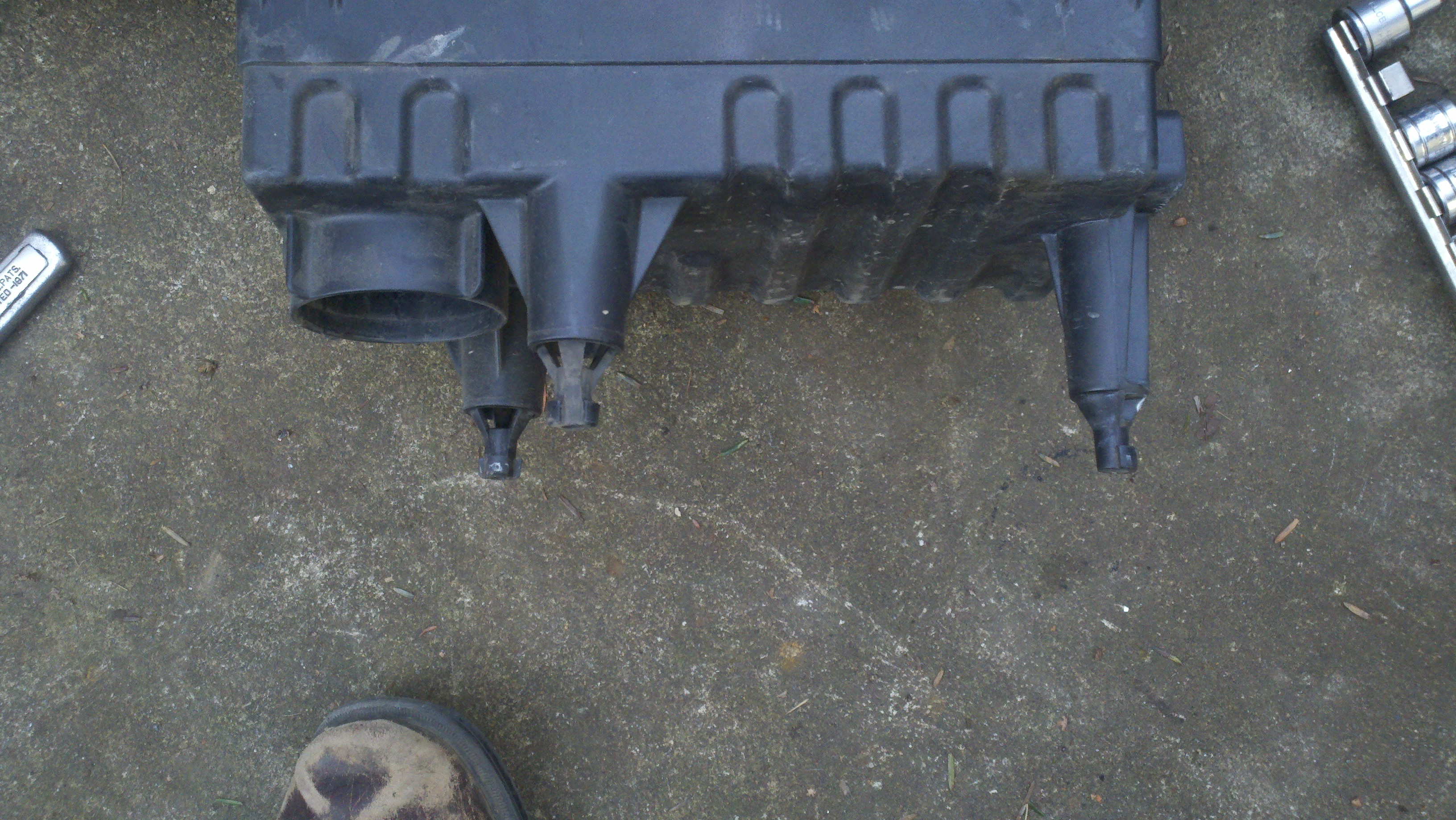 The airbox lifts out as a unit, there are 3 plastic tabs that snap into 3 rubber grommets