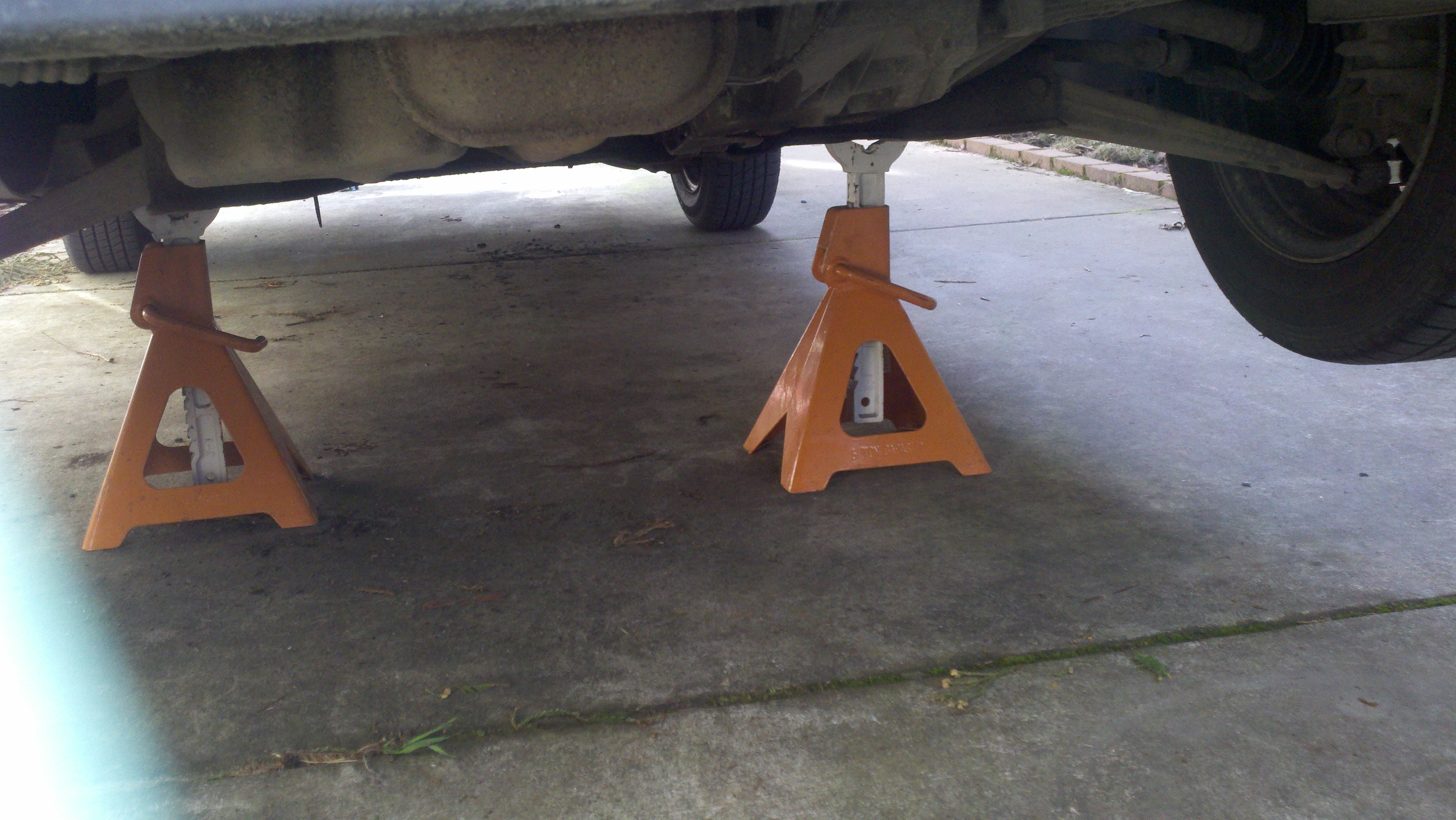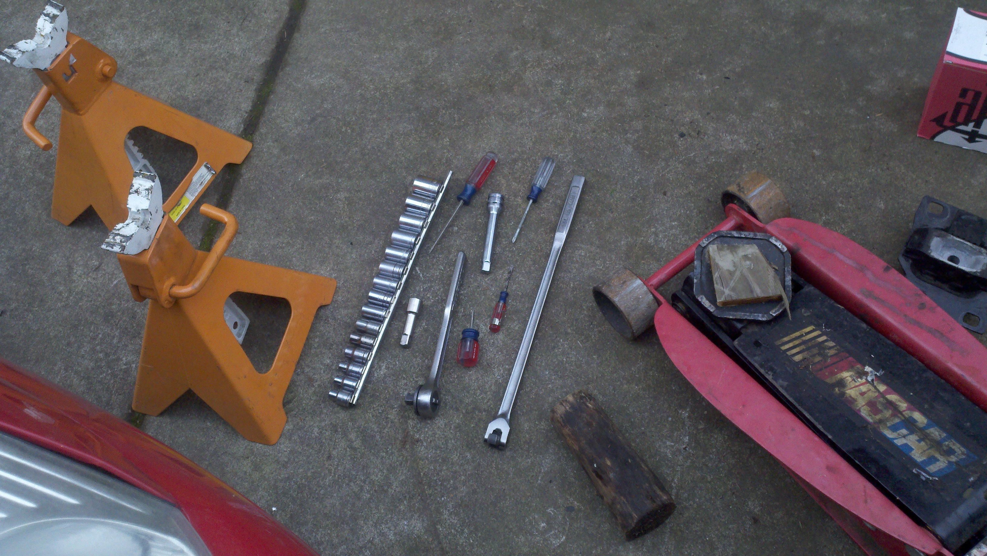 Here are the tools I used, Floor Jack, Jackstands, couple blocks of