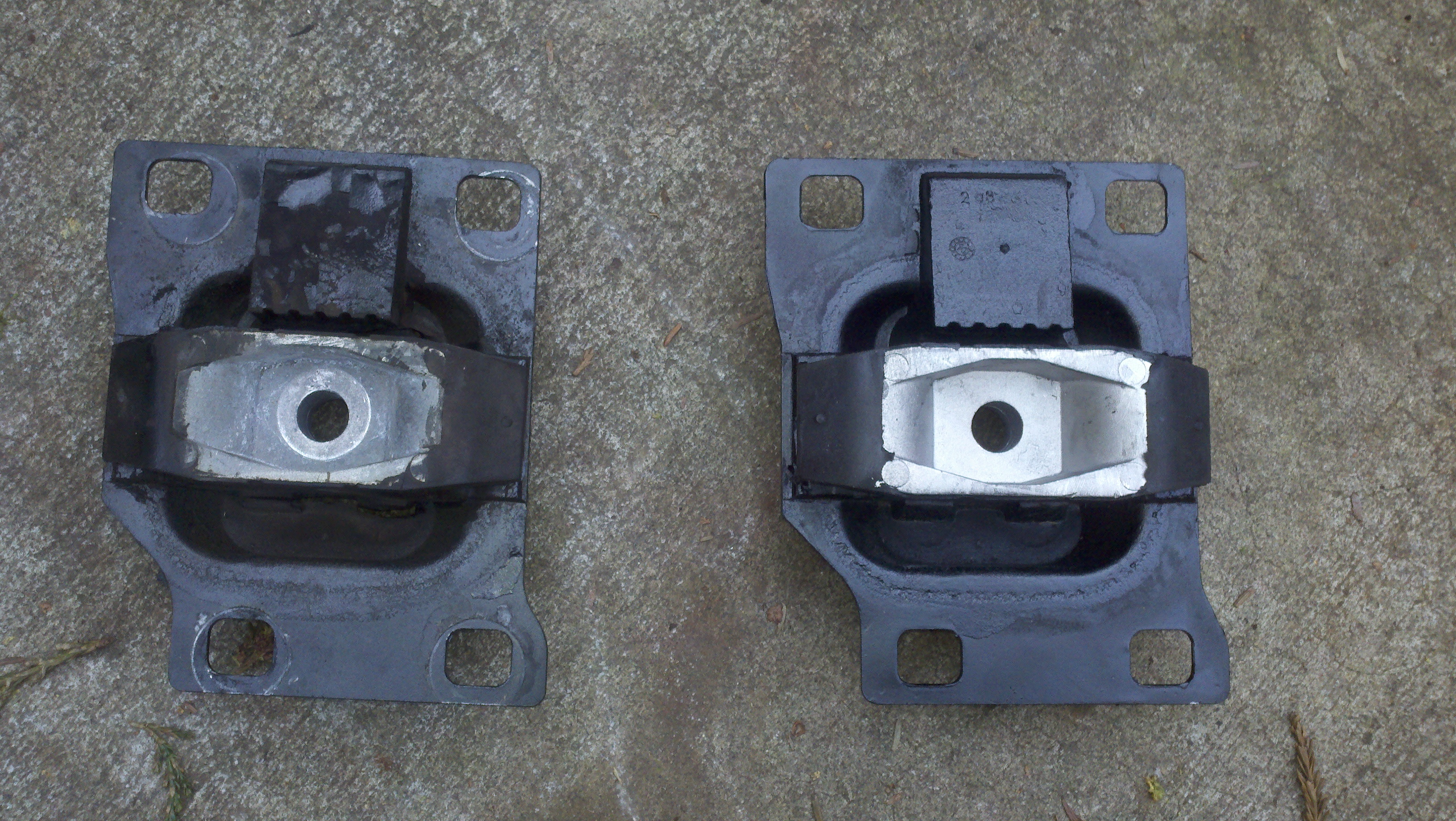 Comparison of the failed and the new Ford mount. See the note at the end of this regarding this mount