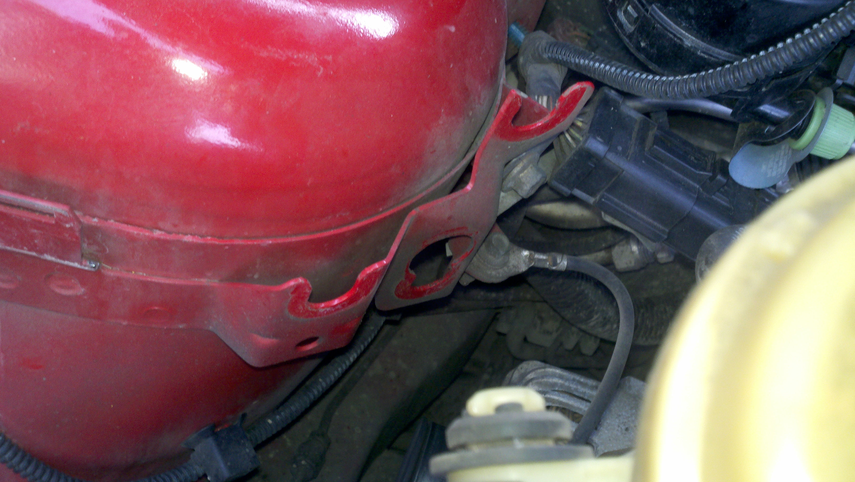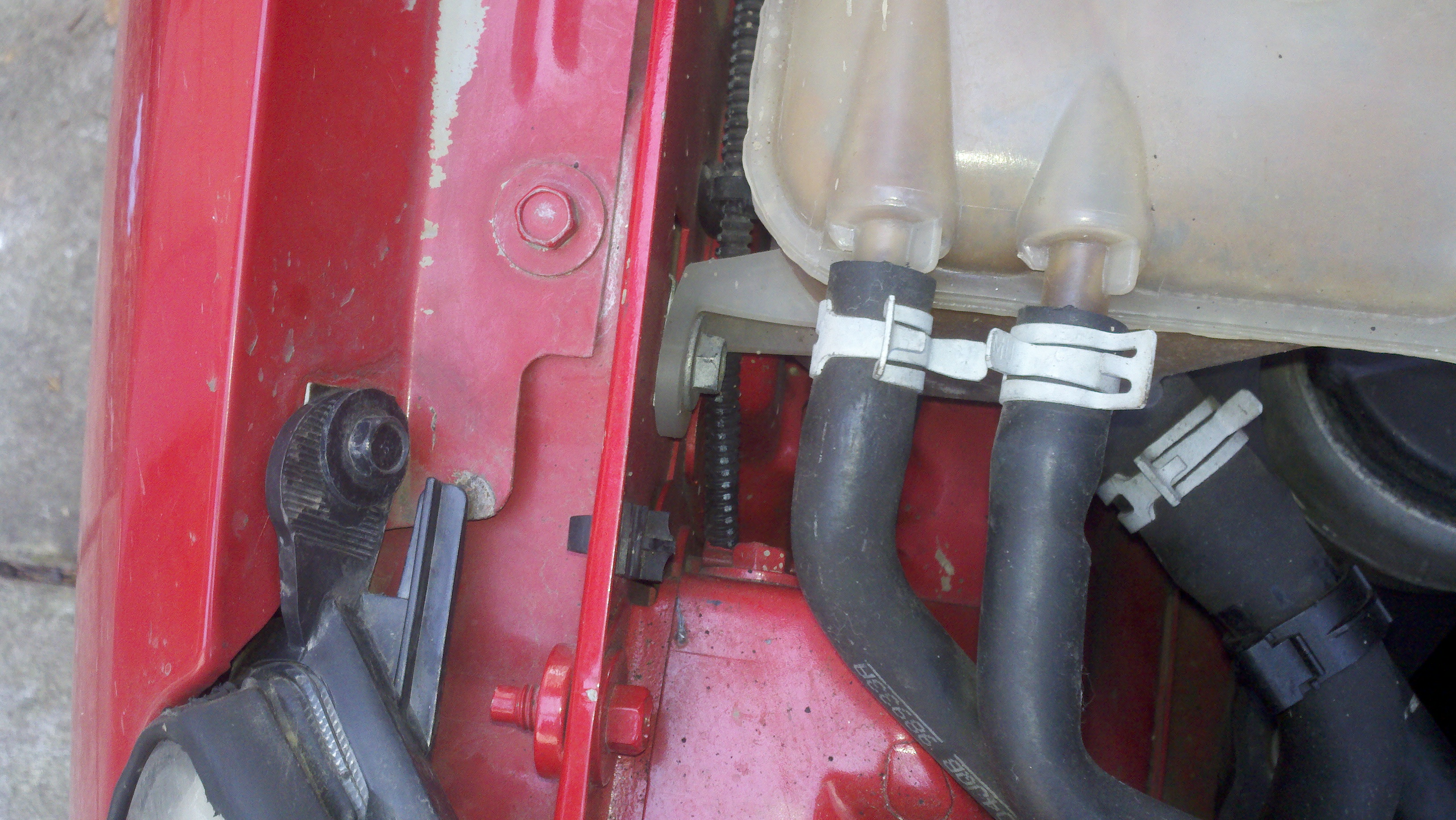Last to install is the passenger mount. Remove the bolt holding the coolant tank