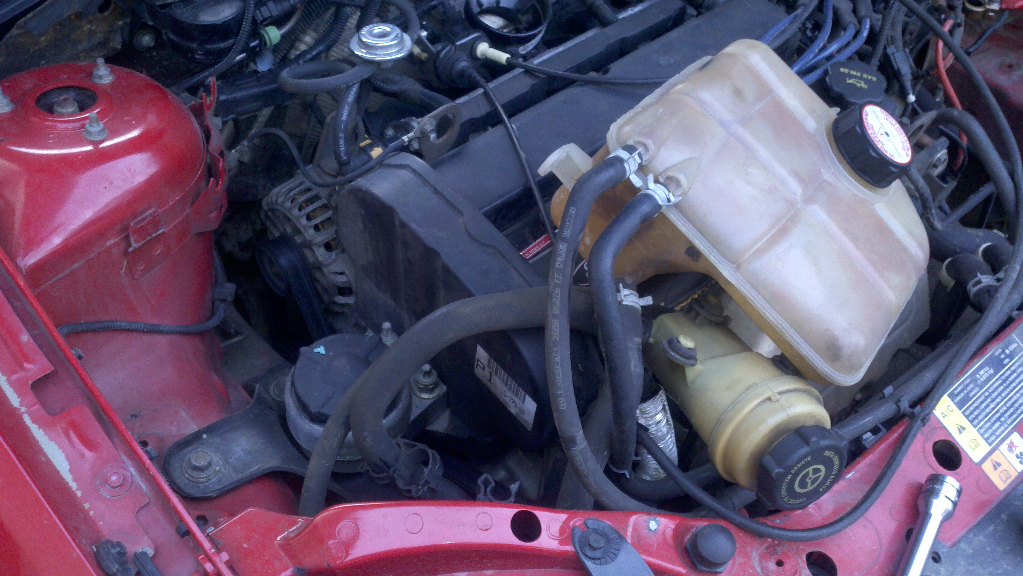 remove battery tray, there are 3 bolts (one was missing on my car I replaced it with a