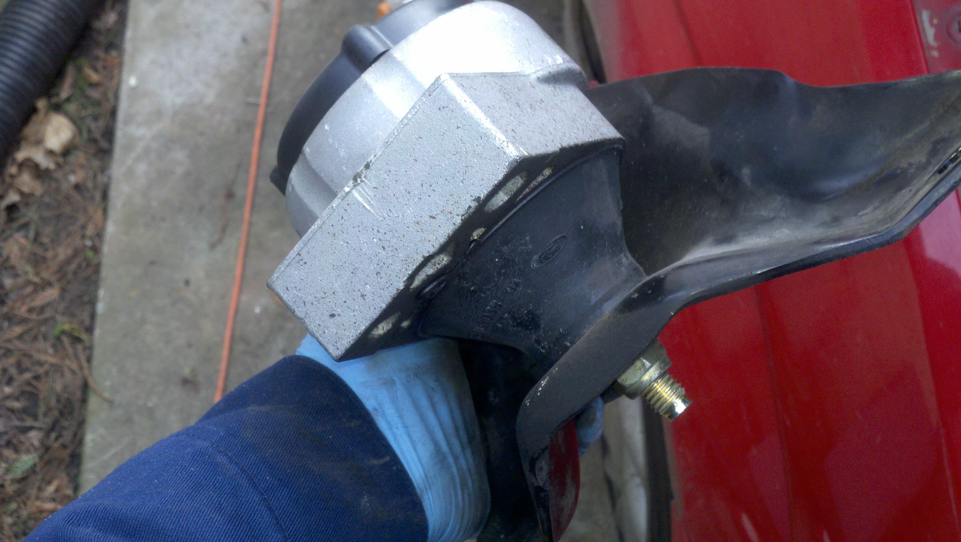 Inspect the dogbone mount (torque mount) for looseness. As you can see this one is